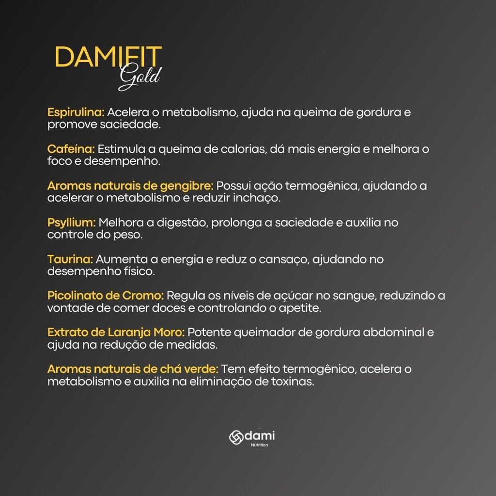 Damifit Gold é a versão extra forte do nosso suplemento de emagrecimento, ideal para quem já fez uso do Damifit Premium e Damifit Turbo e deseja potencializar ainda mais os resultados.